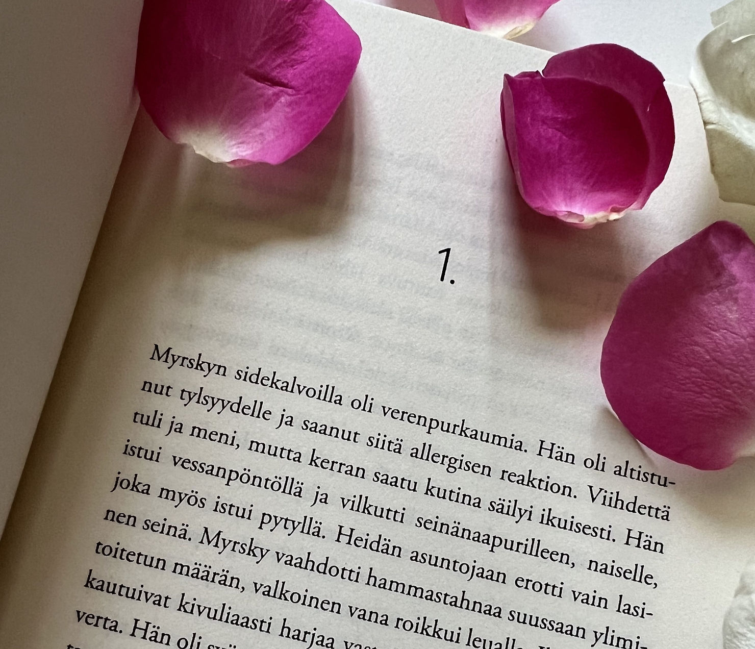 Minä: Käsikirjoituksen loppusuora oli melkolainen myrsky sekin. Prosessiin kuului viime hetken kiire ja lukuisia valvottuja öitä. Taittoversio oli levällään asuntoni lattialla ja seuraavana päivänä oli mentävä toiseen kaupunkiin ripustamaan taidenäyttelyä. Arki jatkui taiteen parissa melko väsyneenä.